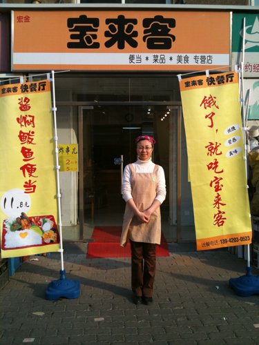 前回大連行ったとき、リーの旦那が弁当屋をオープンしたってきいた。 滞在中に話が出てて準備中って言ってから半年。 そしてオープン一ヶ月。 どーなったかなっと思ってました。 すごく順調にいってるみたいす。 団体客からの注文も来るようになったって♪ 旦那さんは日本語ぺらぺらで日本人みたいす。 大連のお弁当は一品で量がどーんってのばかりだから、 日本みたいにおかずがいろいろ入ってる弁当屋にしたいって言ってました。 前回がオープン2日目とかだったから行かなかったけど、 今度大連行ったら食べてみたいなー・・ 写真もらっておどろいたー こんな立派な店だとは・・・屋台っていうからね。ほんとに屋台だと思ったんだよ。 リーも本業は別にあるから時々お手伝いってことだけど、 似合ってる♪