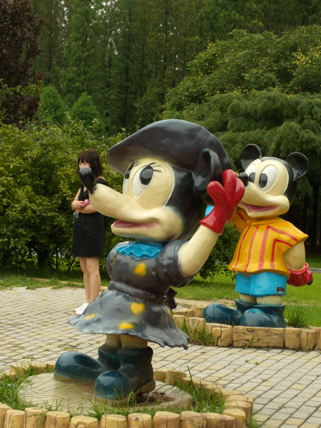 朝から大雨だったけど、午後は止んだから散策に出ました。 タクシーばかりだとどうも道を覚えない。 3時間は歩きまわったぜい♪ 来月、姉さんが遊びに来るっていうから、 ちょっとは観光する場所みとかなきゃ ってのといろんな位置関係を頭にいれたかったのです。 おもしろかったなー・・ 地図を見てある程度頭で覚えて、民生聴きながら、 鼻歌歌っての散策。 あー・・この場所ってここにあったのか。 とか意外と近かったり。 んで人民広場に来たときにちょうど騎馬隊が待機してた。 そいや、観光案内でかいてあった! しばらく待機したあと公園をぐるっとまわってた。 馬もおねーさんもキレイでした♪ でその後、たぶん大連で一番大きい公園、労働公園に到着。 みっきーやみにーのオブジェがいっぱい。 でもさ、すっごい喜んでる子供がいるのみると。 いいんじゃない?って思えちゃう。 楽しそうなんだもん。 いろんな発見のあるこの公園。 また明日書こうっと。 そうそう帰りはタクシーで初めて地図を見せずに 発音だけで帰ってこれました。 ちゃーんとマンションの前までこれた! すごい進歩♪